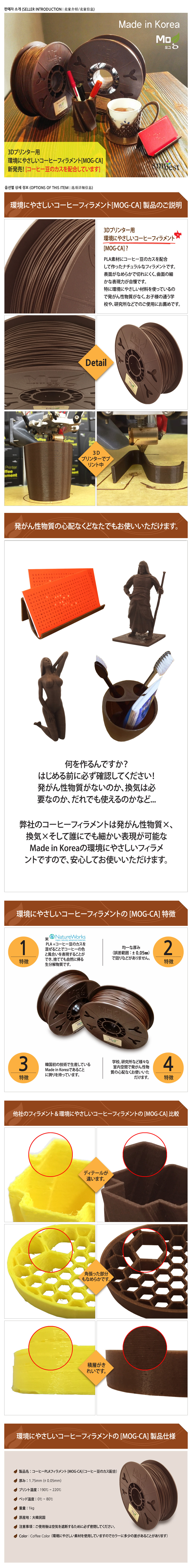 コーンスターチから抽出した原料であるPLAとコーヒーかすを組み合わせて作った環境配慮型Hybrid Filamentです。